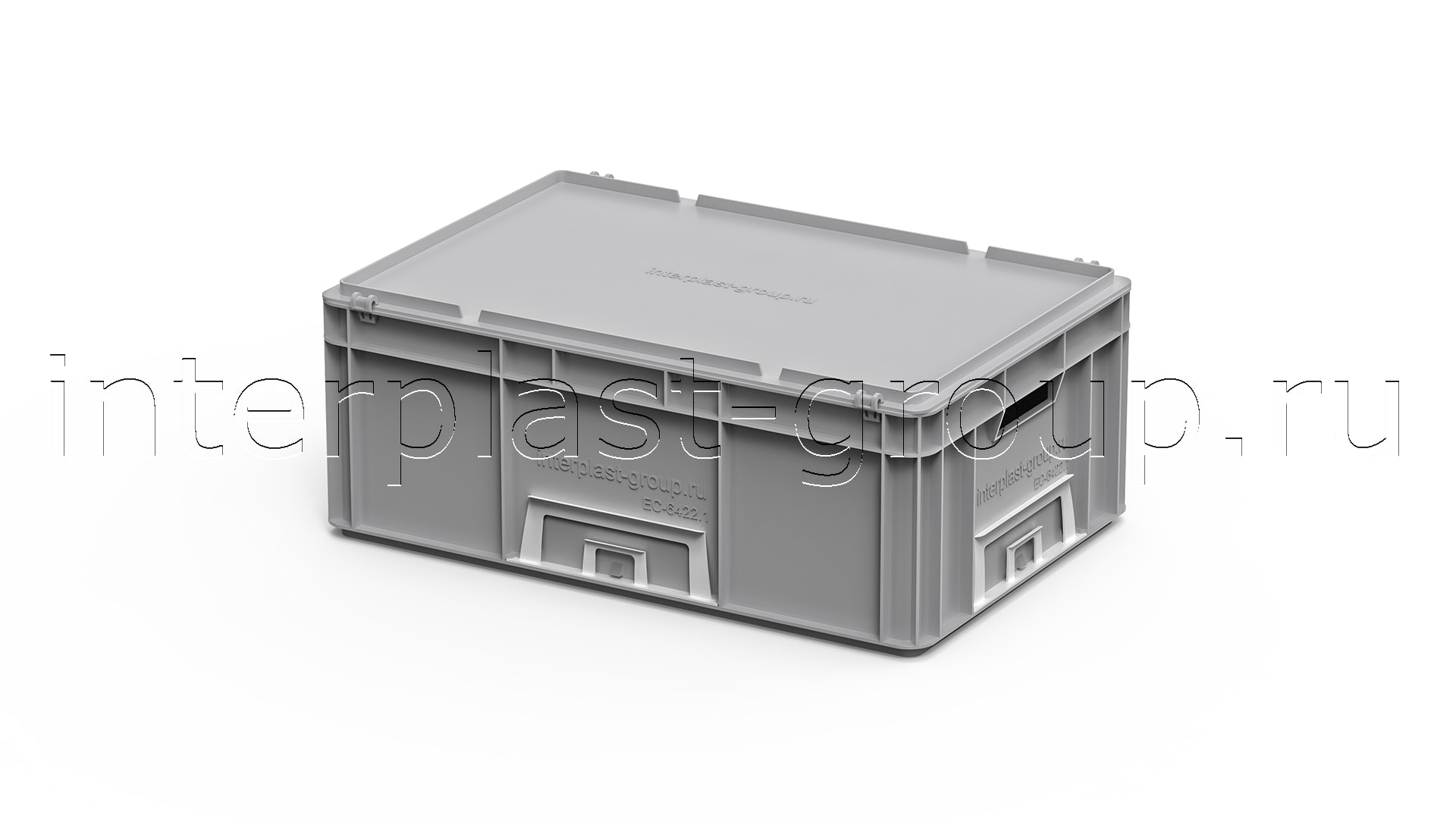 Евроконтейнер открытые ручки/сплошное дно (серый), 600x400x220 мм