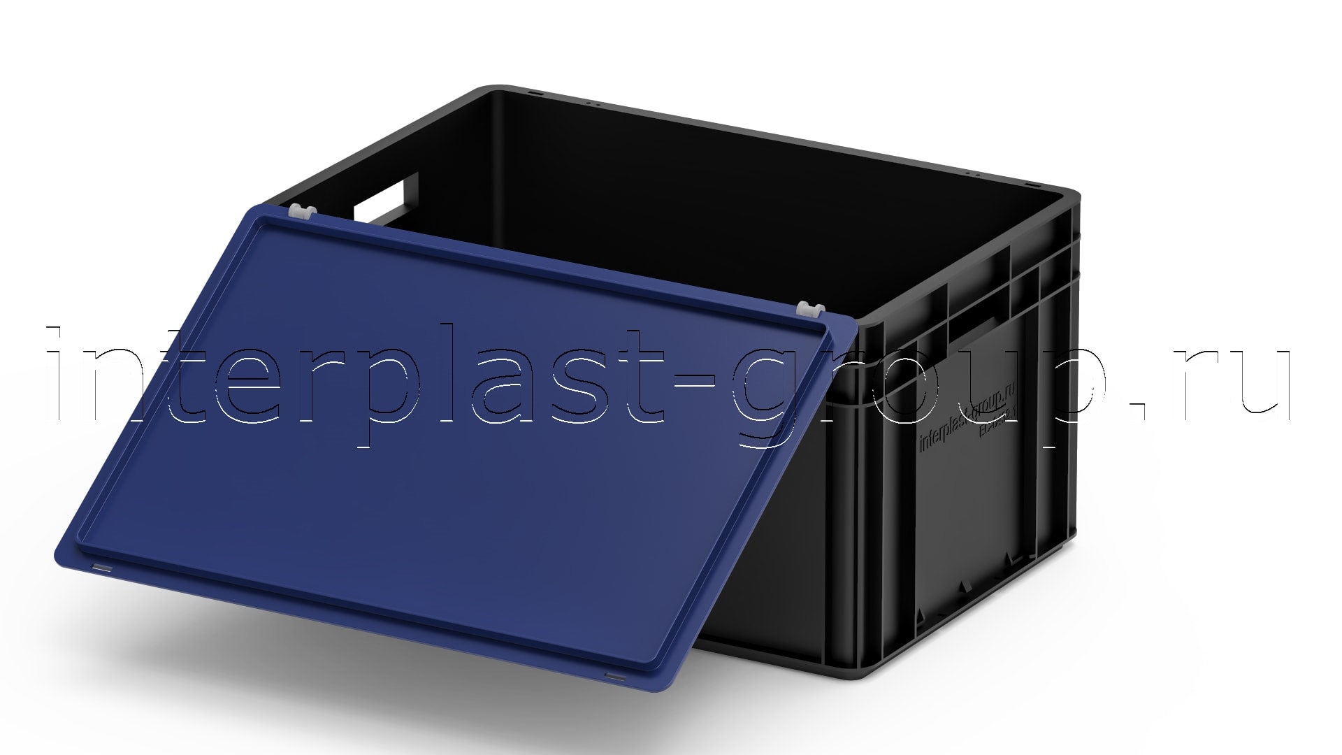 Евроконтейнер открытые ручки/сплошное дно (черный), 600x400x320 мм