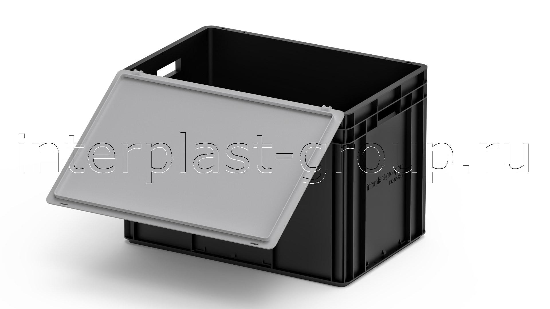 Евроконтейнер открытые ручки/сплошное дно (черный), 600x400x420 мм