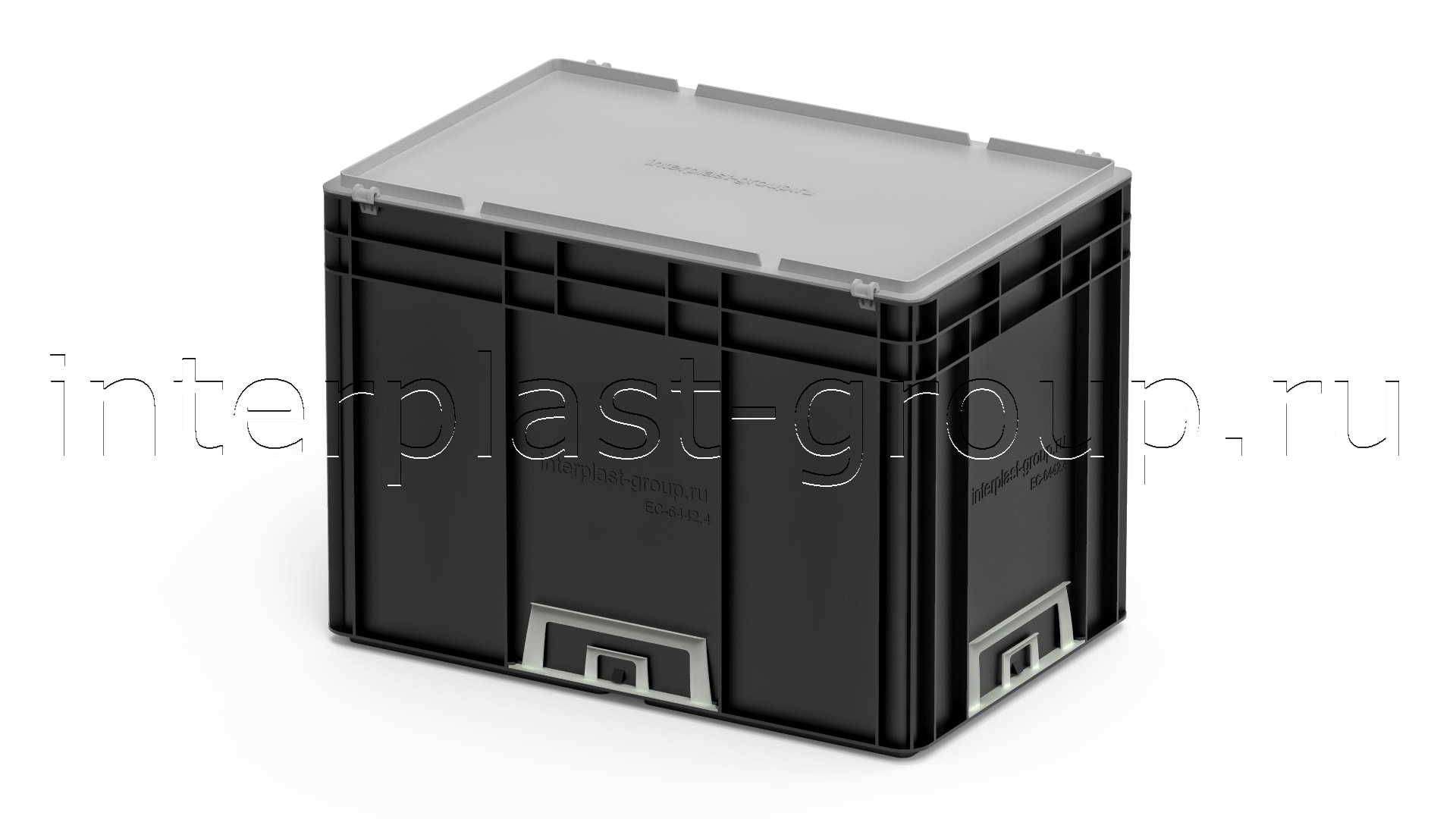 Евроконтейнер закрытые ручки/усиленное дно (черный), 600x400x420 мм