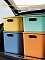 Вкладываемый пластиковый ящик экономит место, когда не используется, а при наличии крышки его можно штабелировать для компактного хранения. Открытые ручки делают переноску легкой и комфортной.