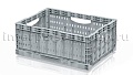 Складные ящики разработаны и спроектированы для хранения и перемещения плодо-овощных культур как внутри производства, так и между торговыми точками и складами. Благодаря функции складывания значительно экономят место при использовании в качестве возвратной тары. Перфорированные стенки обеспечивают сохранение свежести и сочность продуктов перфорации абсолютно на всех стадиях логистики. Штабелируются на паллетах 1200х1000 и 1200х800.